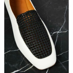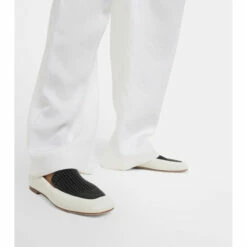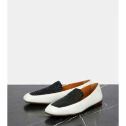 The Olene loafers from Chloé uses contrasting tones and textures for an iconic look. Made from smooth white and woven black calf leather, this design can be dressed up or down depending on the occasion.