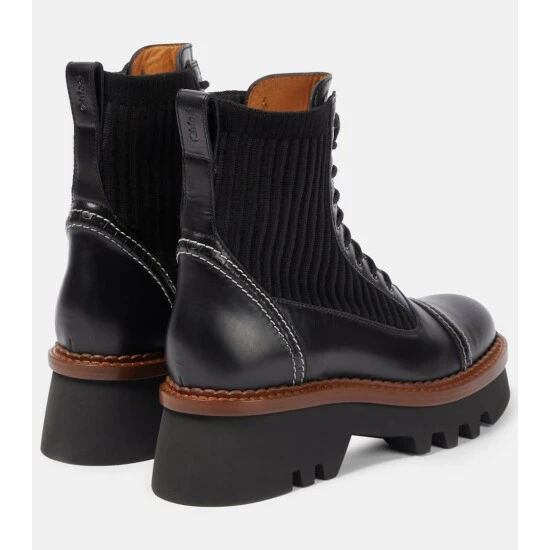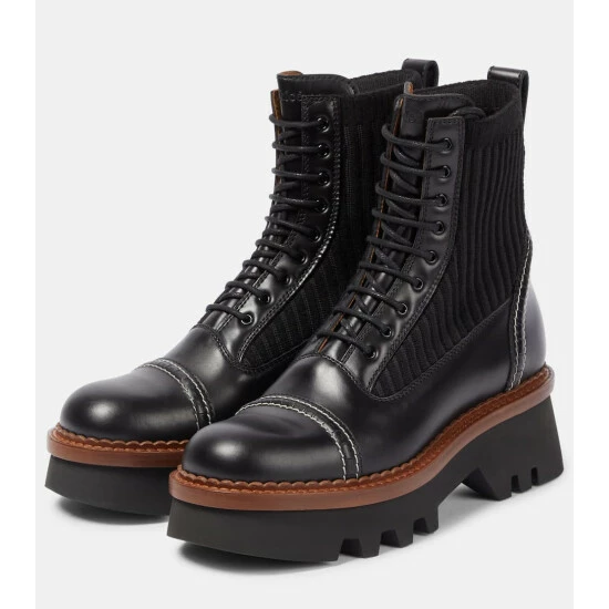 The Owena lace-up boots demonstrate Chloé’s mastery over mixing materials. Made from smooth calfskin and featuring knitted panels atop rubber soles, this design also includes contrast and saddle stitching to achieve a confident, sporty effect.