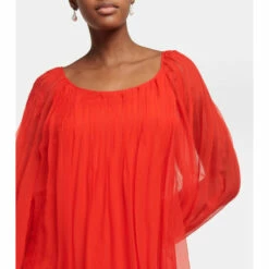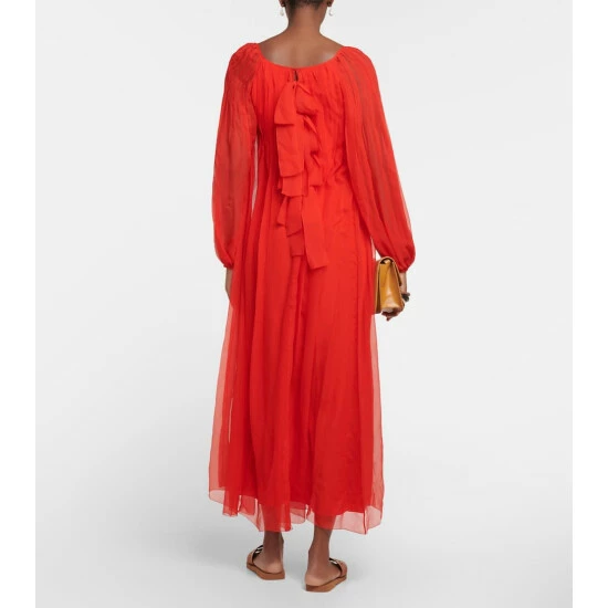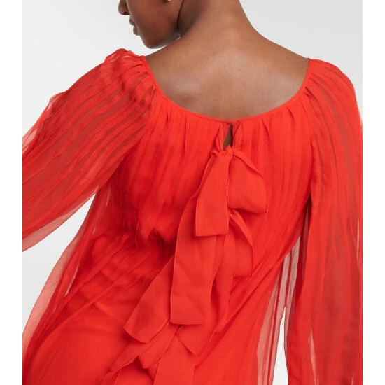 This sheer maxi dress from Chloé will certainly turn heads at your next event. Made from featherweight silk mousseline into a relaxed, pleated silhouette, it features billowy long sleeves and self-ties at the back.