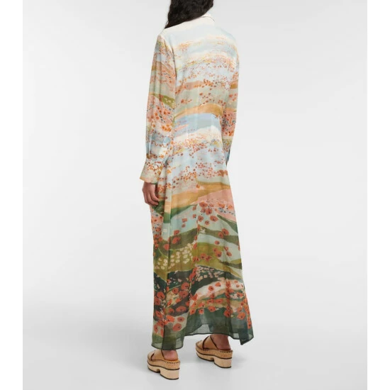 Chloé adds a refreshing delicacy to the classic shirt dress with a scenic poppy print. Made from virgin wool gauze, the design achieves a cinched silhouette with corset-inspired seams and has a pure silk lining.