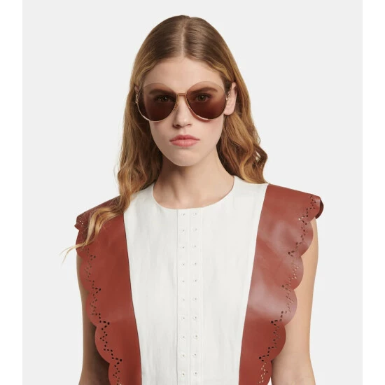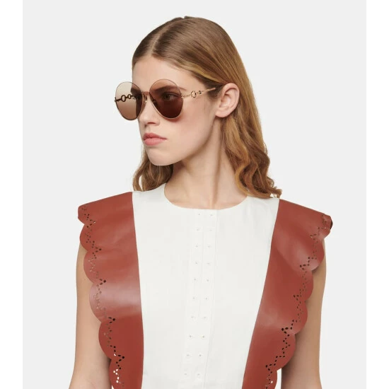 Inflect everyday look with vintage charm courtesy of these sunglasses from Chloé. Made from gold-toned metal, they have round frames with tinted brown lenses that offer category 3 protection. Please note the color of the protective case may vary.