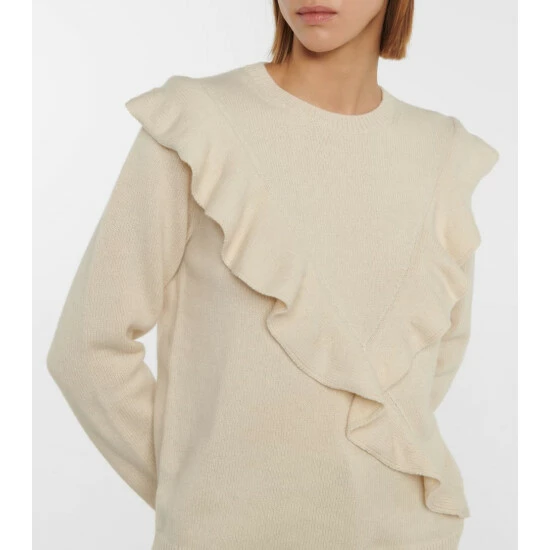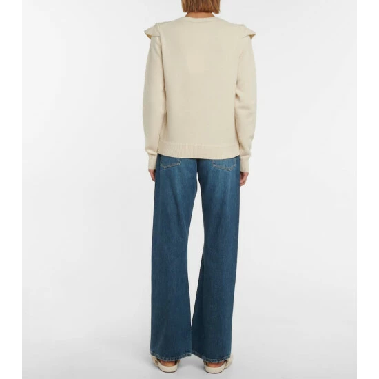 This sweater from Chloé is a bohemian wardrobe staple. Knitted from pure cashmere, it has a V-shaped yoke that’s trimmed with a running ruffle for a romantic look.