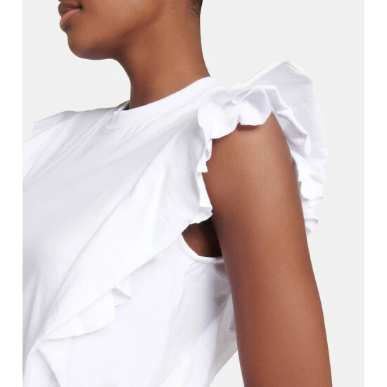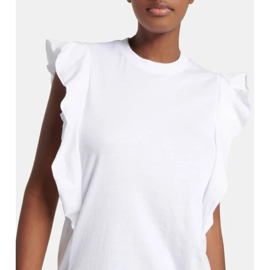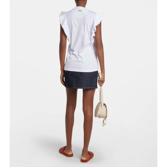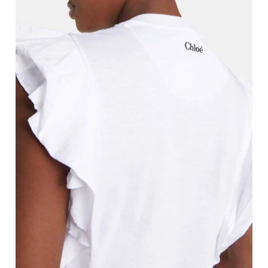 Chloé presents a romantic take on the classic white T-shirt with this ruffle-trimmed style. Made from cotton jersey, this piece is complete with logo embroidery on the back yoke.