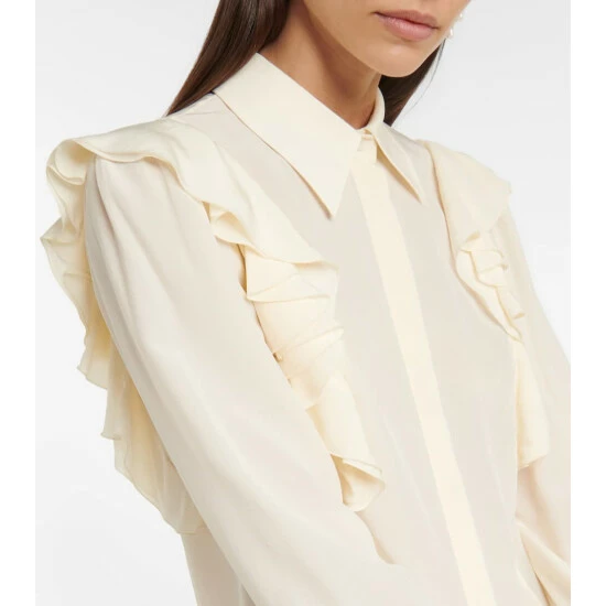 Add a feminine touch to your workwear edit with this Chloé silk shirt. The design features a regular fit with gathered sleeves and delicate ruffles cascading from the shoulders.