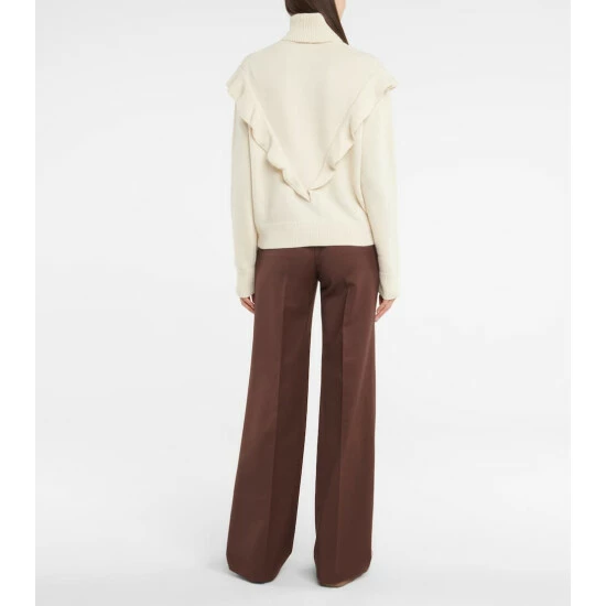 Chloé brings a touch of romance to your knitwear edit with this cream-hued turtleneck sweater. It’s made from pure cashmere and features a ruffle-trimmed yoke in the front and the back.