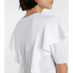 In line with Gabriela Hearst’s sustainable vision for Chloé, this T-shirt is cut from deadstock jersey. It’s framed with a layered flounce that runs from front to back creating the brand’s signature wing-like sleeves.