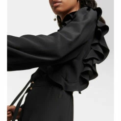 This silk dress from Chloé adds a romantic touch to the classic shirt silhouette with playful ruffles at the shoulder. The semi-sheer design has concealed buttons and comes with a matching fabric belt.