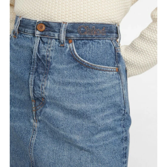 The Sangay miniskirt is part of the Chloé Circular Denim Project. Made from recycled cotton and hemp, this A-line silhouette has been laser-treated for a vintage-style wash that requires much less water than traditional washes.
