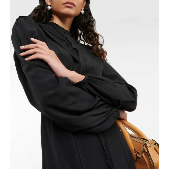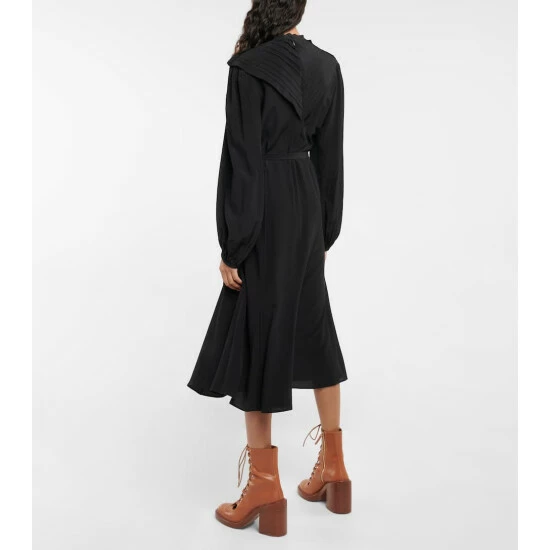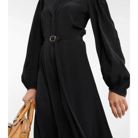 This elegant and versatile midi dress from Chloé is made from organically cultivated silk crêpe de chine. It features V-shaped details on the chest and has a fit-and-flare silhouette with a belted waist.