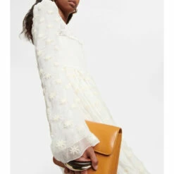 This minidress from Chloé is made in France from pure silk. It has a square neckline, puffed shoulder, a flounce skirt and it features delicate embroidery throughout.