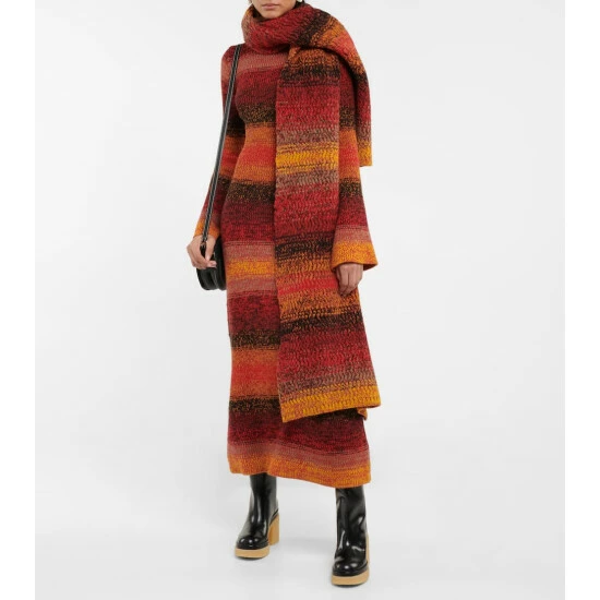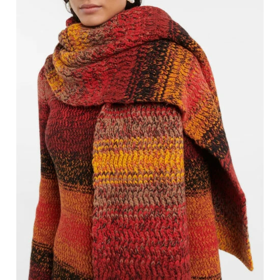 This cozy scarf from Chloé is knitted in Italy from pure cashmere. It’s detailed with irregular stripes in graduated warm tones and features subtle logo embroidery at the trim.