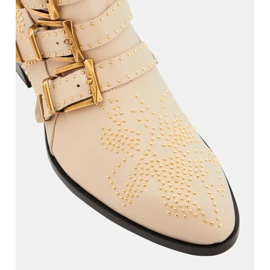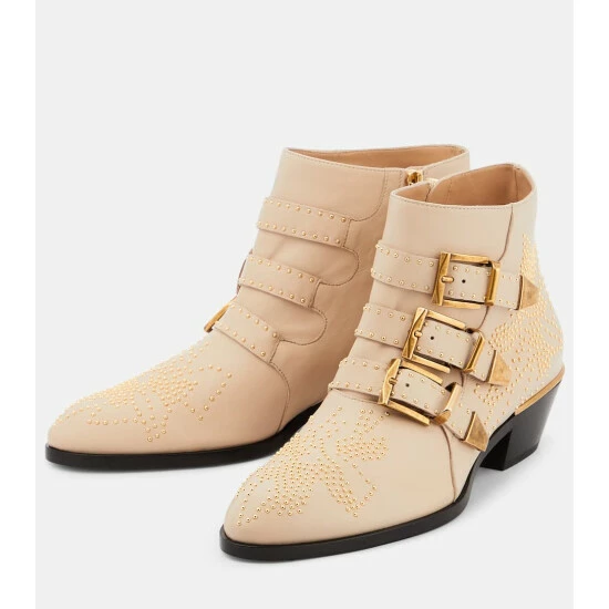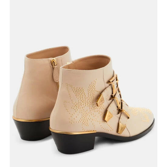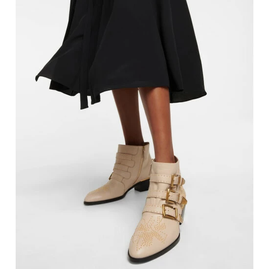 Inspired by the classic cowboy boot silhouette, the Suzanna ankle boots from Chloé give every look a ruggedly glamorous finish. Made from smooth nappa sheepskin leather, this design features floral stud embellishments and buckled straps.