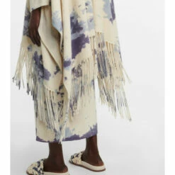This oversized poncho is made from cashmere with an ample hood and long fringing. Featuring digitally printed designs of a traditional Shibori tie-dye pattern, Chloé’s exclusive collection will set the mood for summer.