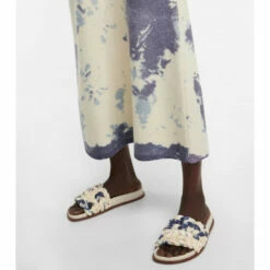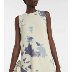 Featuring digitally printed designs of a traditional Shibori tie-dye pattern, Chloé’s exclusive collection will set the mood for summer. This dress is knit from cashmere in a nubby basket-stitch and has a shift silhouette with a long-length skirt.