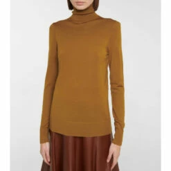 Chloé elevates a classic winter silhouette with this caramel brown turtleneck sweater. Made from pure wool, the lightweight design has a straight fit and is trimmed with delicately puffed shoulders and scalloped cuffs. For a touch of sophistication, style with a tonal midi skirt.