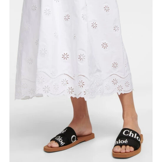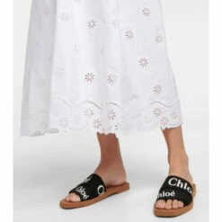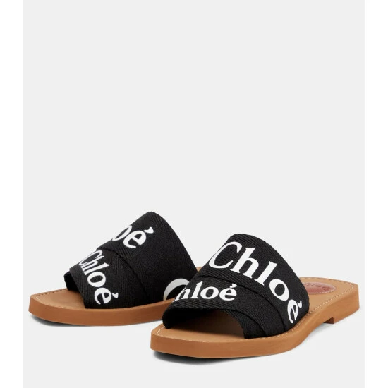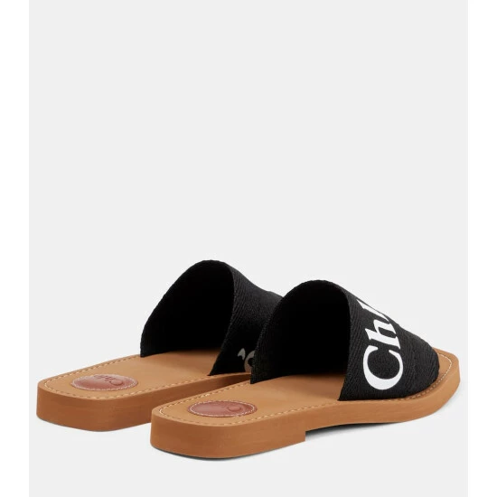 Chloé offers a summer essential with the Woody slides, which possesses a black cotton canvas upper and brown rubber sole. Crafted in Italy, this slip-on style is elevated by the label’s striking logo print in high-contrast white. Show yours off with cropped denim and midi skirts alike.