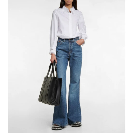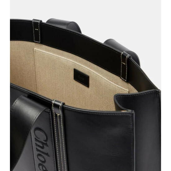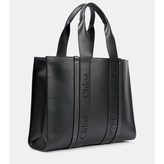 Swing Chloé’s Woody Large tote over one shoulder for easy Parisian elegance. Made from black leather to a structured boxy shape, it’s supported with supple calfskin leather and logo-adorned trims for optimum carryall ability.