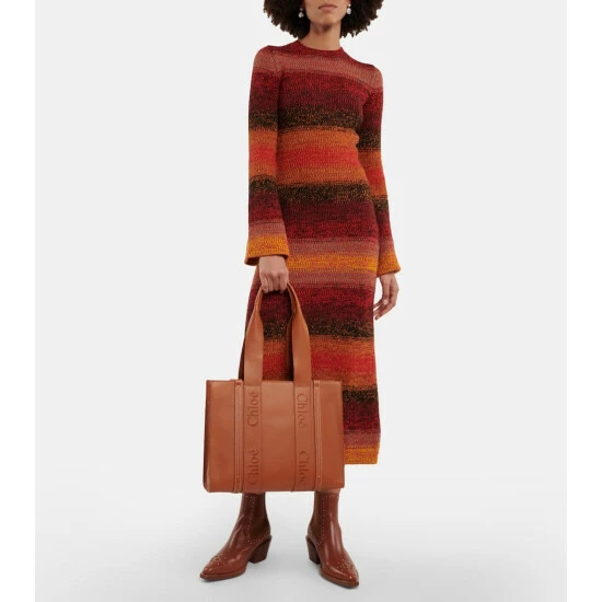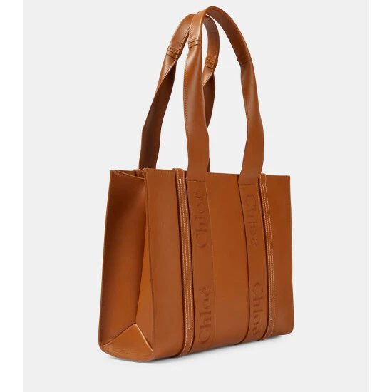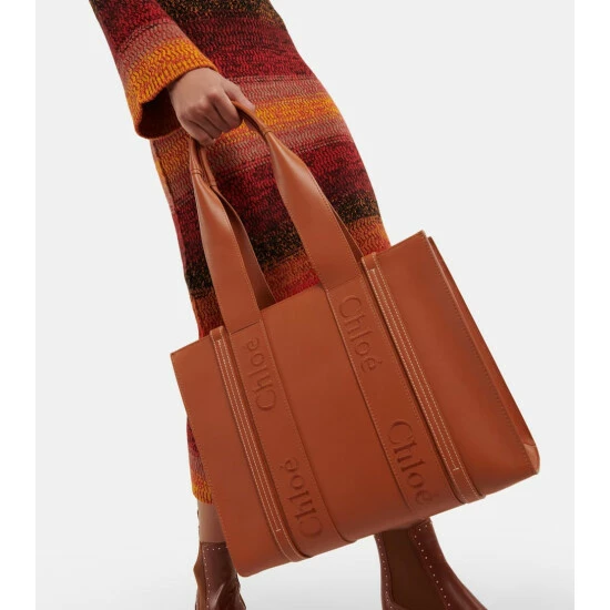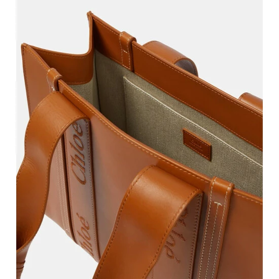 The Woody Medium tote from Chloé is detailed with hand-embroidered decorative trims. It’s made from leather and has a roomy interior.