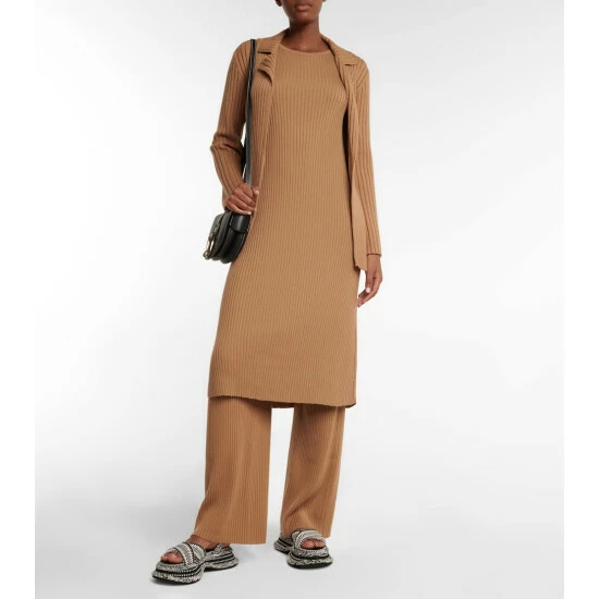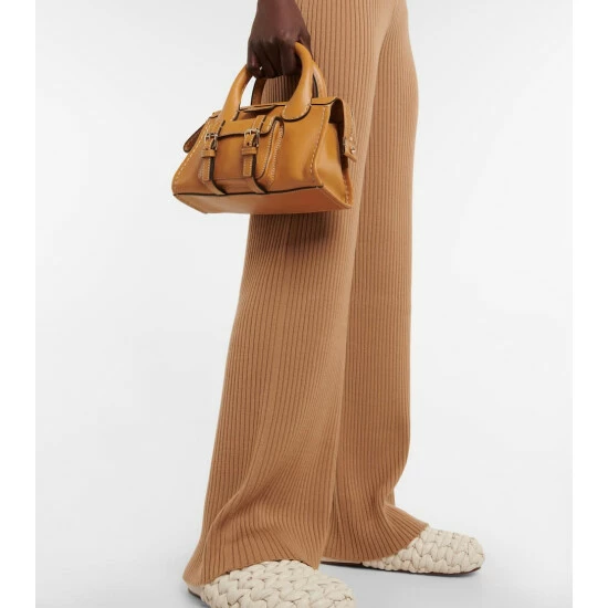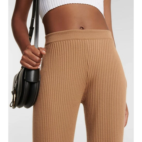 Chloé balances elegance and comfort with these flared ribbed-knit pants. They are made from camel brown wool and cashmere and cut into a high-rise with flattering flared legs.