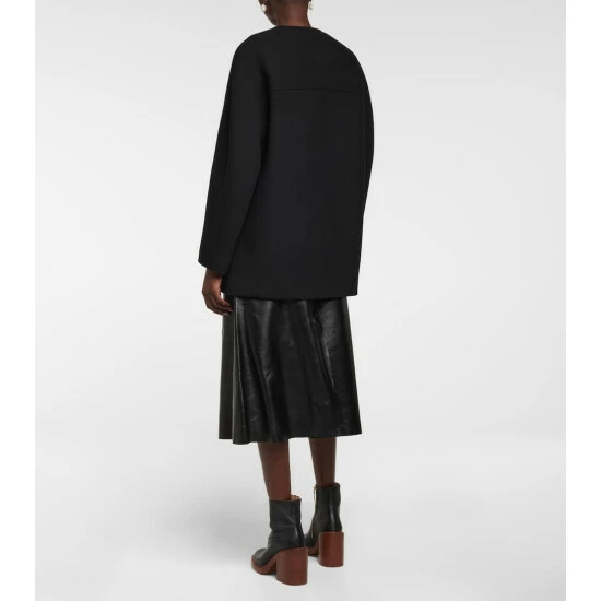 This short Chloé coat is made from a soft wool blend in a boxy shape with balloon sleeves. Fully lined in silk, it has delicate topstitching and a V-neck front with a zipper fastening.
