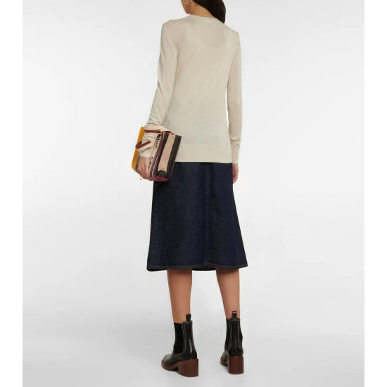Look to Chloé for refined knitwear options like this V-neck cardigan. It’s knitted from a fine quality wool yarn and finished with scalloped cuffs.