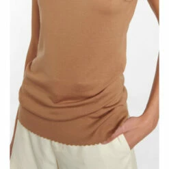 Gabriela Hearst for Chloé showcases supreme fabrications. This minimalist ribbed-knit vest is made from merino sheep’s wool.