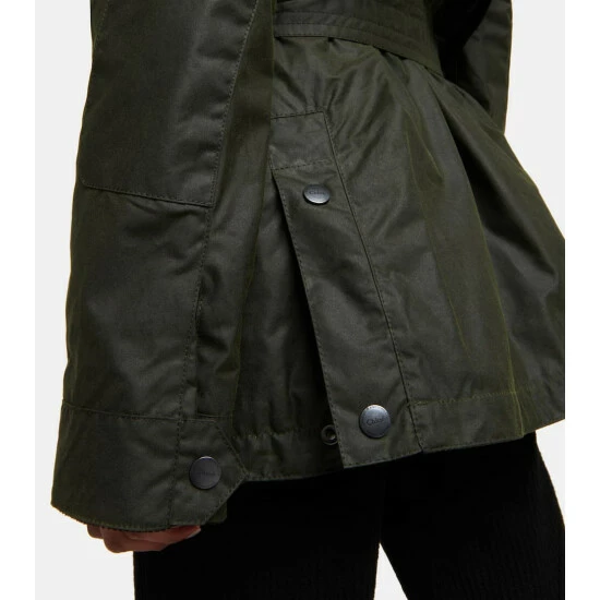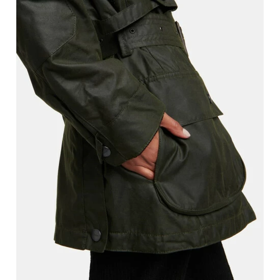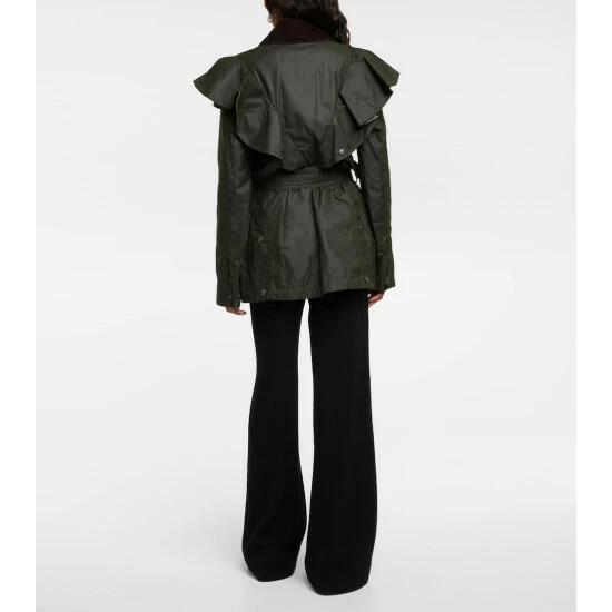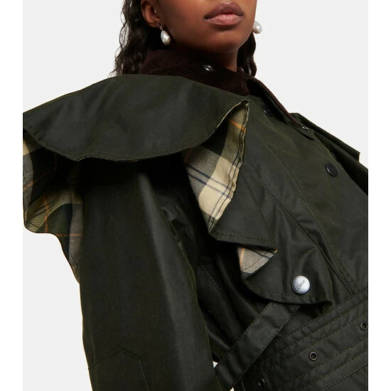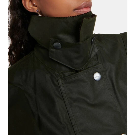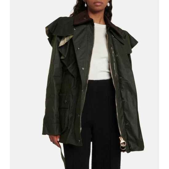 In this exciting collaboration, Chloé reworks Barbour’s iconic wax cotton outerwear with the design of the Dustyn jacket. The updated style is defined by its corduroy collar, ruffled shoulders, and tartan-inspired lining.
