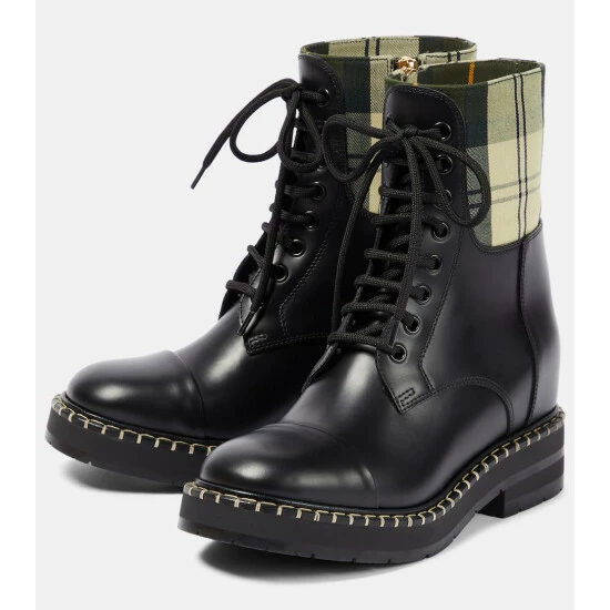 Minimalism reaches its maximum potential with these lace-up ankle boots from Chloé x Barbour. This style is crafted in Italy from leather and features a contrasting plaid detail and stitches at the sole.