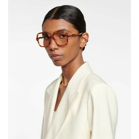For those who favor head-to-toe Chloé looks, let the Zelie glasses be the understated part of a statement look. This clear-lens pair has square acetate frames that are shaped to ripples at the logo-engraved temples.